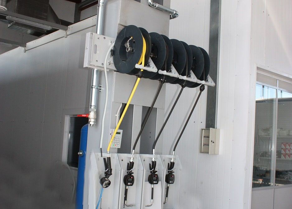 Система самостоятельно управляет насосами, они находятся под давлением только во время маслораздачи, и тем самым, утечки в связи с обрывом шланга или чрезмерного давления масла исключены, система также защищена от завоздушивания.
