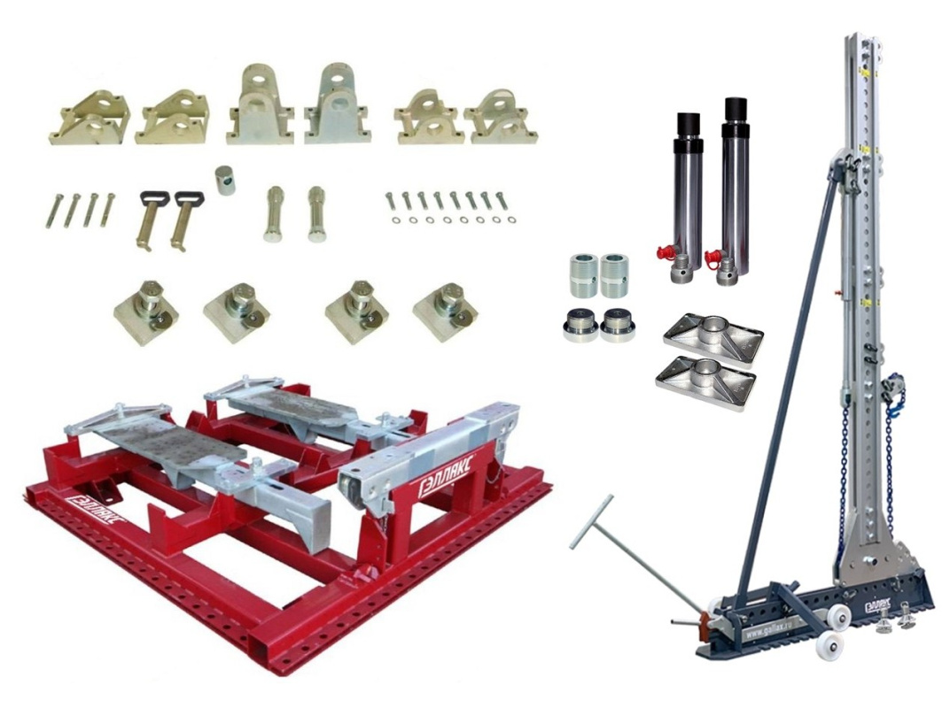 Силовая башня высотой 3,67 м с помощью гидравлической оснастки и специальных принадлежностей позволяет восстанавливать правильную геометрию вертикальных элементов каркаса и крыши кабины или кузова автобуса.