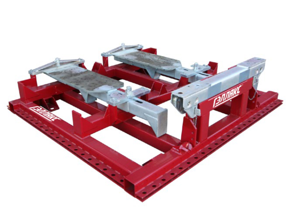 Стапель обеспечивает надежное крепление кабин, что упрощает процедуру ремонта. Встроенные в станину подвижные базовые площадки облегчают монтаж даже очень поврежденных кабин. Основание кабины вытягивается до правильной формы при помощи гидроцилиндров, которые устанавливаются в штатные места стапеля и двигают площадки с закрепленной на них кабиной в нужном направлении.