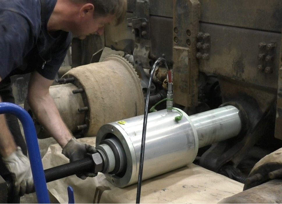 Гидравлический способ демонтажа осей балансира Скания устраняет риск механических повреждений дорогостоящих компонентов, облегчает и ускоряет трудоемкую работу.