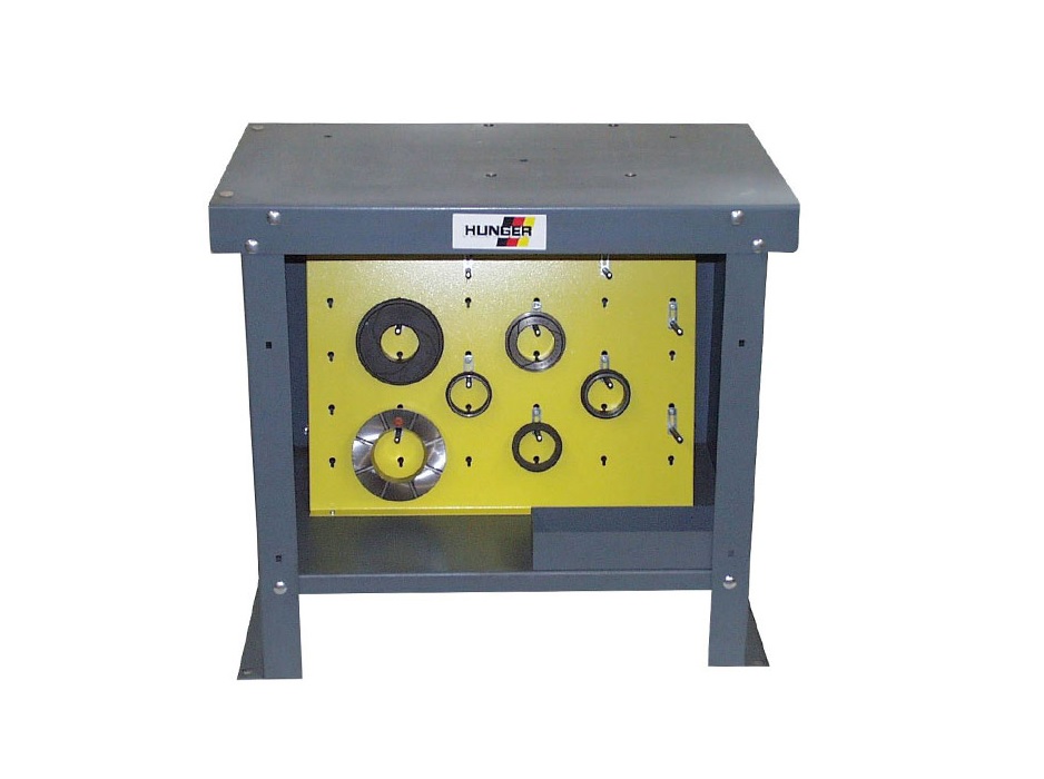 Внутри основания установлена перфорированная панель с крючками для хранения оснастки.