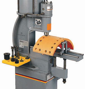 При работе на любом клепальном стенде необходимо каждую заклепку вставлять снизу в накладку по отдельности и придерживать её рукой от выпадения. При использовании нового приспособления HUNGER, клепальный пуансон располагается снизу а оправка сверху. Следовательно, при такой схеме работы, накладка будет находиться над колодкой. Теперь все заклепки могут быть свободно вставлены в накладку сверху, и оставаться в ней во время всего процесса клепки.