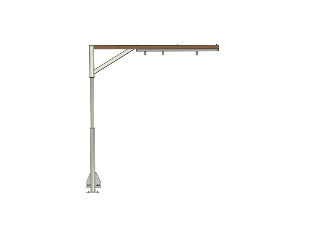 Поворотная консоль с балансиром устанавливается на тележку для перемещения установки индукционного нагрева с блоком охлаждения и предназначена для подвешивания шланг-пакета и трансформатора с индуктором для удобной работы. Плечо и радиус поворота консоли составляет 2 метра. На консоли закреплена направляющая с роликами скольжения, к которым за карабины подвешивается шланг-пакет и тросовый балансир. К балансиру крепится трансформатор с индуктором.
