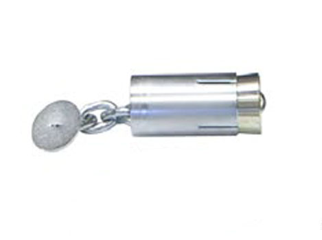 ДИАМЕТРОМ 90 ММ, ДЛИНОЙ 200 ММ, ТОЛЩИНОЙ СТЕНКИ 5 ММ, С 4-МЯ ПРОРЕЗЯМИ ДО СЕРЕДИНЫ ДЛИНЫ. СКВОЗЬ ЦИЛИНДР ПРОХОДИТ СТАЛЬНАЯ ЦЕПЬ СО СВАРНЫМИ ЗВЕНЬЯМИ ДЛИНОЙ 30 СМ ПОПЕРЕЧНЫМ СЕЧЕНИЕМ ЗВЕНА 13 ММ,