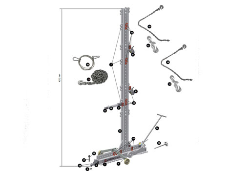 Данный комплект позволяет работать в ремзоне без напольных направляющих. Может использоваться для правки кабин, автобусов, кабин спецтехники, везде где необходима правка на высоте до 4,1 метра.