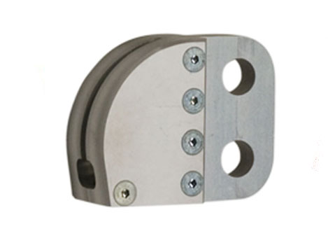 Изделие из алюминия четырехугольной формы со скошенным (закругленным) одним углом с двумя отверстиями диаметром 35 мм по одной стороне для закрепления его на основании арт. JO2010. Внутри сделана Т-образная прорезь для закрепления цепи.