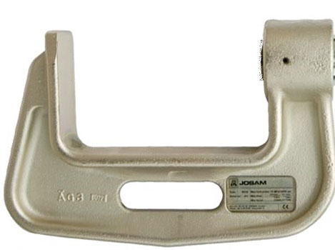 Силовая струбцина, предназначена для использования совместно с 10 тонным гидравлическим цилиндром. С помощью струбцины можно исправлять небольшие локальные деформации на лонжеронах продольных или поперечных. Оборудование используется в составе стапеля Josam для правки рам и кабин. Струбцина имеет небольшой вес и компактные размеры, что позволяет механику без особых усилий выполнять работы по правке рам и кабин.