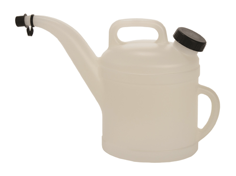 Лейка для масла с рукояткой, артикул 21644, объём 6 л. Изготовлена из полиэтилена высокой плотности. Отверстие для наполнения с крышкой и насик с крышкой.