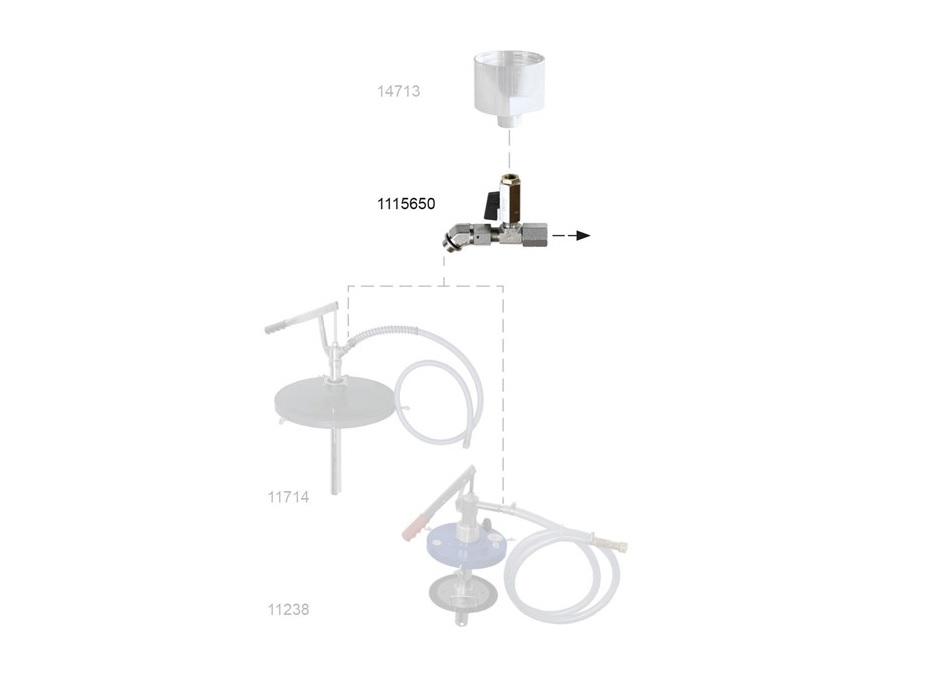 Крепится к выходному отверстию насоса, позволяя заправлять насосы и шнековые (винтовые) трубки одним и тем же насосом, без необходимости снятия выпускного шланга.