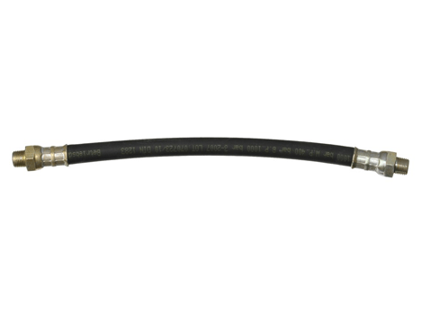 Шланг выпускной для смазки, артикул 14044, длина 450 мм, соед. резьба G1/8" (m). Шланг высокого давления, внутр. диам 4 мм, из нитрильной резины с одной нейлоновой оплёткой. Номинальное давление (PN) 50 МПа (500 бар), опрессован муфтами.