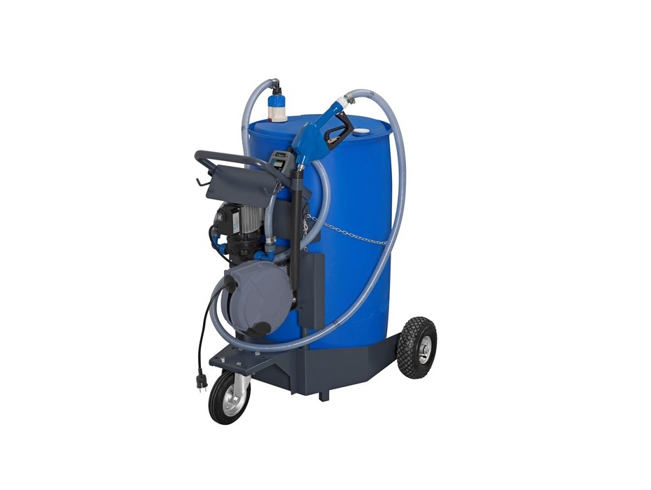 Мобильная электрическая установка арт. 75020 предназначена для раздачи AdBlue в условиях авторемонтных мастерских. Состоит из: тележки для перемещения 200л бочек, электрического мембранного насоса 220 В, 1,5 м всасывающего шланга с фильтром, электронным расходомером и 3 м напорным шлангом с пистолетом. Катушка с электрическим кабелем для увеличения рабочего диапазона, в комплект не входит и продается отдельно.
