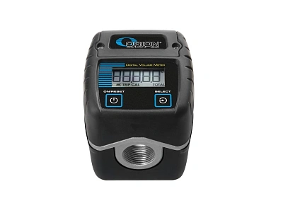 Электронный расходомер арт. 24763 предназначен для учета объема раздаваемой технической жидкости (масла или гликоля) проходящей через него. Может использоваться совместно с пистолетом для раздачи, а может устанавливаться в разрыв шланга или трубоводной магистрали. Расходомер обладает ЖК дисплеем с возможностью отображения 5-ти значных цифр и двумя кнопками, при помощи которых производится настройка, калибровка и сброс текущего объема. Корпус расходомера изготовлен из алюминия, шестерни из Acetal. уплотнения из NBR, оси из нержавеющей стали AISI 316 SS. Расходомер обеспечивает производительность до 80 л/мин и может работать при температуре окружающей среды от -10 до +60 градусов.