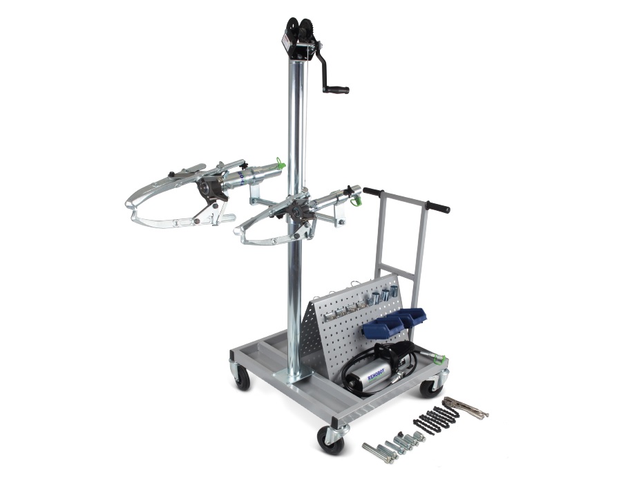 Более того, благодаря встроенной лебедке, тележка сама по себе является рабочей платформой. Например, Вы можете поднять съемник на рабочую высоту при помощи подъемной лебедки с высокой точностью. Это не только экономия времени и снижение трудозатрат, это очень важно с точки зрения безопасности рабочего процесса. Механику нет необходимости держать вручную съемник во время работы – установил съемник и отошел в сторону.